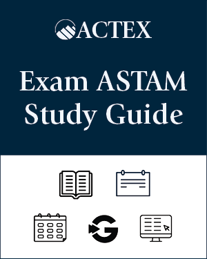 The Exam ASTAM continues to develop the candidate’s knowledge of modeling and important actuarial methods that are useful in modeling, as well as ratemaking and reserving for short-term coverages. A thorough knowledge of calculus, probability (as covered in Exam P), mathematical statistics (as covered in VEE Mathematical Statistics), and the fundamentals of short-term actuarial mathematics (as covered in FAM) is assumed.